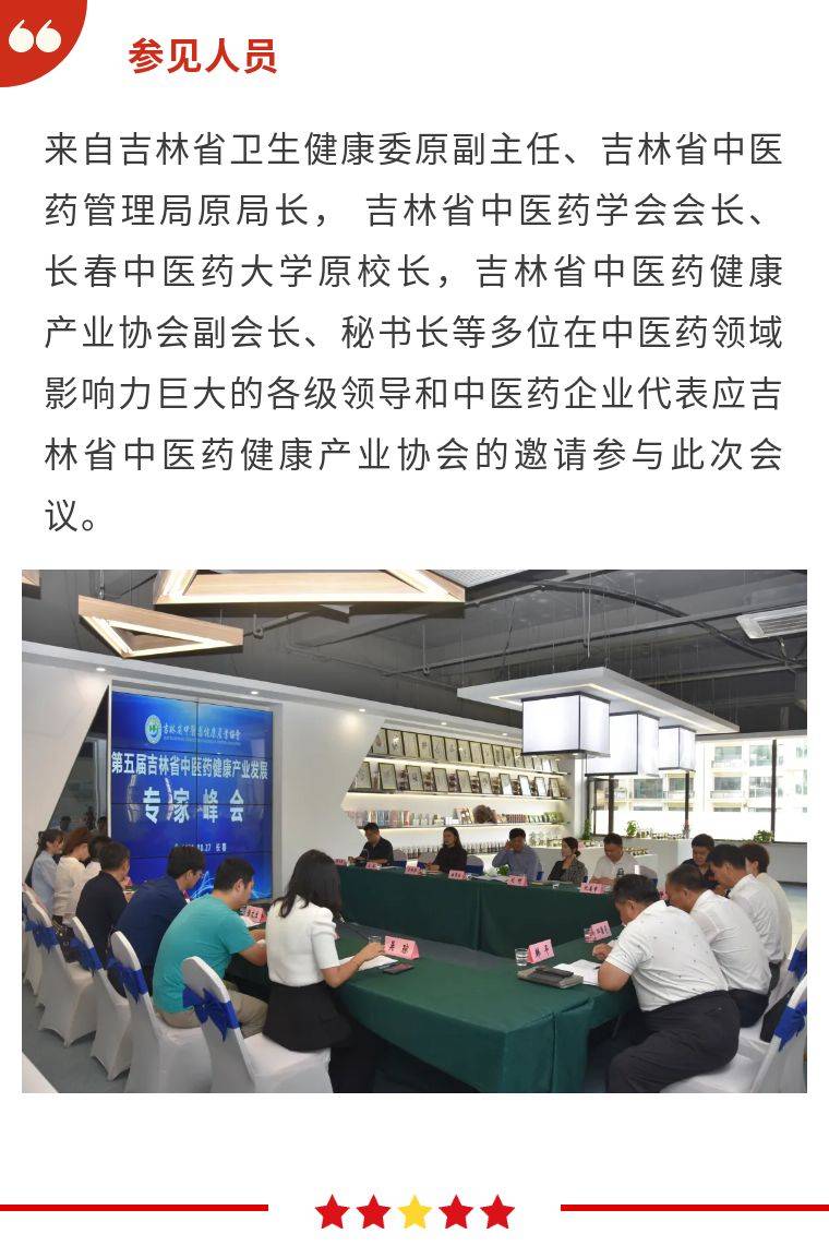 2021年8月27日,第五届吉林省中医药健康产业发展专家峰会在摆渡中医药健康产业园圆满召开。会议内容是了解发展趋势、把脉产业问题、提出对策建议、拓展企业外交、互相取长补短、整合优势资源、合作建大平台等。
