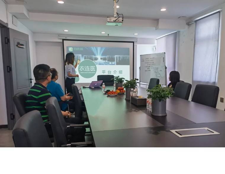 公司员工从“农连医”平台功能、系统、开展情况、以及取得的成绩做了汇报,让专家进一步了解“农连医”平台。