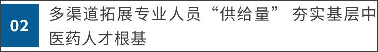 为进一步夯实基层中医药人才根基,《基层中医药服务能力提升工程“十四五”行动计划》明确提出,从扩大基层中医药人才有效供给、畅通基层中医药人才使用途径、改善基层中医药人员发展环境等3个方面推进基层中医药人才建设。