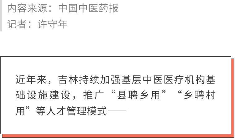 为推动基层中医药人才可持续发展,今年9月26日,吉林省中医药管理局、省教育厅等四部门联合印发了《吉林省关于加强新时代中医药人才工作的实施意见》,进一步提出夯实基层中医药人才队伍。将通过订单定向培训、传承工作室建设等持续扩大基层人才供给,到2025年,为每个二级以上县级中医医疗机构建立1~2个传承工作室,培养一批基层人才。面向基层医疗机构医师和乡村医生开展中医药知识技能全员培训,用5年左右时间实现人员培训全覆盖,培训一批“能中会西”的基层医生。