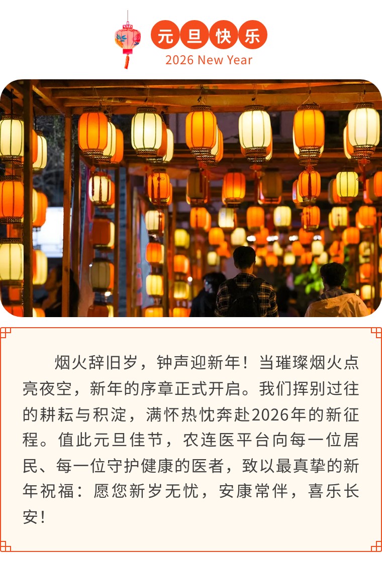 旧岁已展千重锦,新年再进百尺竿。2026年,农连医将以更专业的诊疗服务、更暖心的陪伴关怀、更便捷的就医体验,守护每一个家庭的健康幸福,赋能医疗生态高质量发展,让健康之光照亮城乡每一个社区的角落。