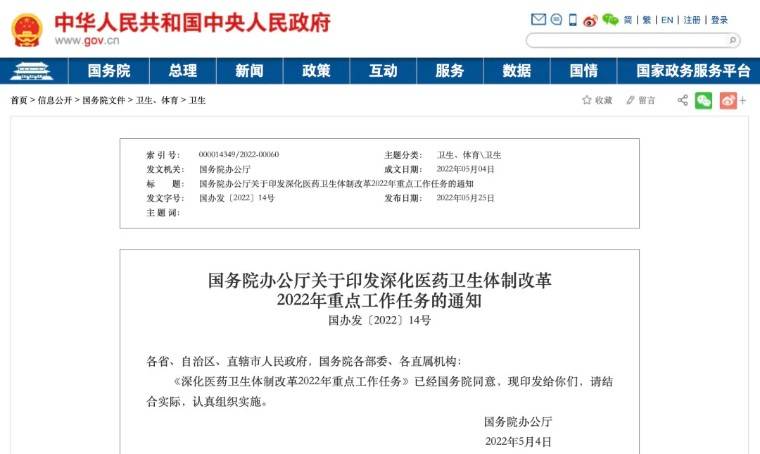 5月25日,国务院办公厅印发《深化医药卫生体制改革2022年重点工作任务》,从4个方面提出21项具体任务,将推动中医药振兴发展列为重点任务之一,国家中医药局按职责分工负责多项中医药工作。