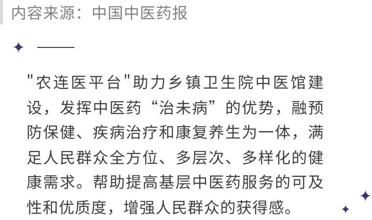 《任务》要求,推动中医药振兴发展。推进中医药综合改革。开展医疗、医保、医药联动促进中医药传承创新发展试点。选择部分地区开展医保支持中医药发展试点,推动中医特色优势病种按病种付费。推进中西医协同“旗舰”医院建设和重大疑难疾病中西医临床协作试点项目。加强基层医疗卫生机构中医药服务能力建设,力争实现全部社区卫生服务中心和乡镇卫生院设置中医馆、配备中医医师。