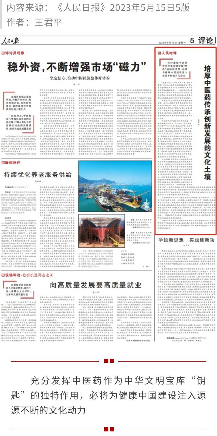 一株小草改变世界、一枚银针联通中西、一缕药香跨越古今……中医药学是中华民族的伟大创造,我们要把中医文化传承好。充分发挥中医药作为中华文明宝库“钥匙”的独特作用,必将为健康中国建设注入源源不断的文化动力。