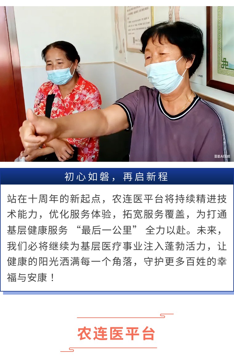 在时光的长河里,十年是一段镌刻初心与担当的旅程。于农连医平台而言,这十年,是逐梦基层医疗的十年,是砥砺深耕的十年,更是为居民健康带来深刻改变的十年。