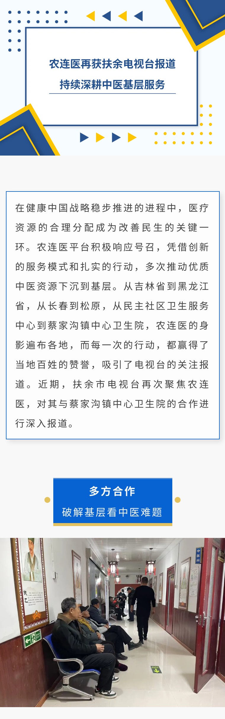 农连医平台与蔡家沟镇中心卫生院的合作,是医疗资源下沉的生动实践。未来,农连医将持续发力,深化与更多基层医疗机构的合作,将优质的中医服务带到更多百姓身边,为健康乡村、健康中国建设贡献更多力量。